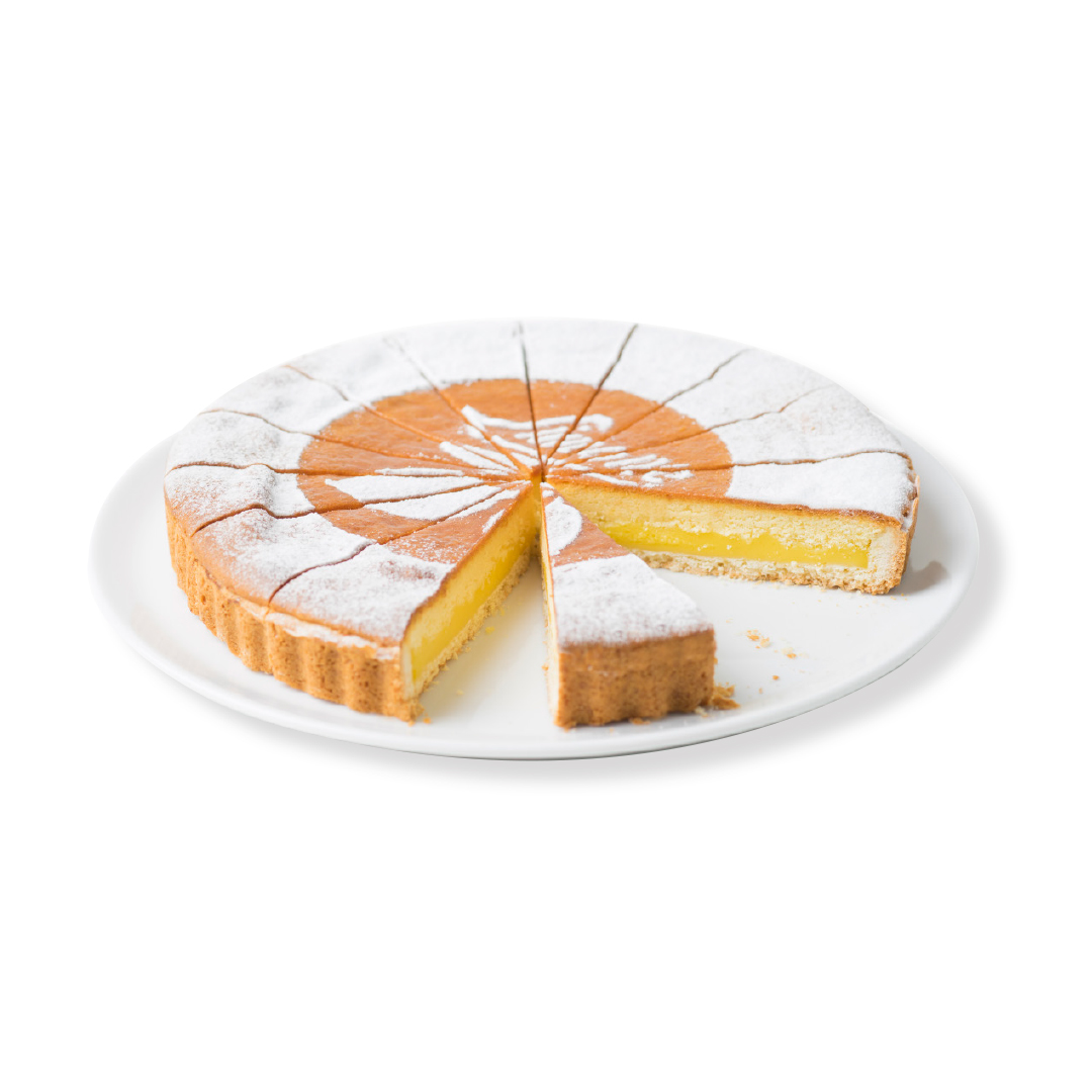 Shortcrust base covered with a tasty lemon cream topped with a stunning iceing sugar decoration. A tart with all the charming taste and scent of Sicily.